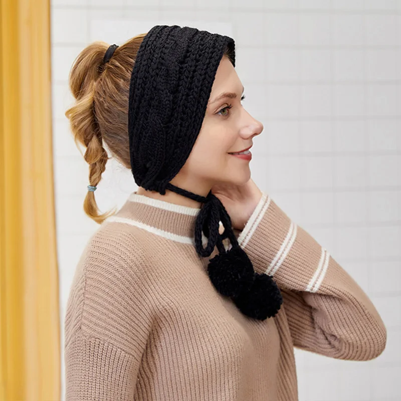 Lace Up Wool Knitted Earmuffs Bib Ear Cover Dual Use Trendy Hair Ball Earflaps Cute Ear Warm Female Girl Vacation Ear Muff Aliexpress
